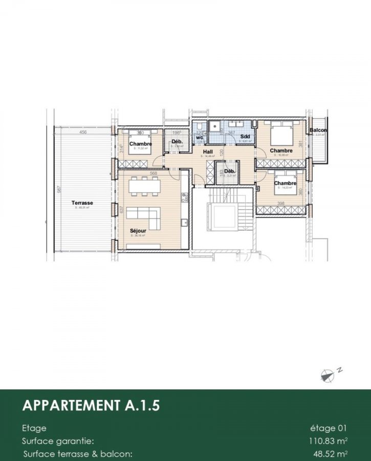 - Wohnfläche : +/-110,00 m2