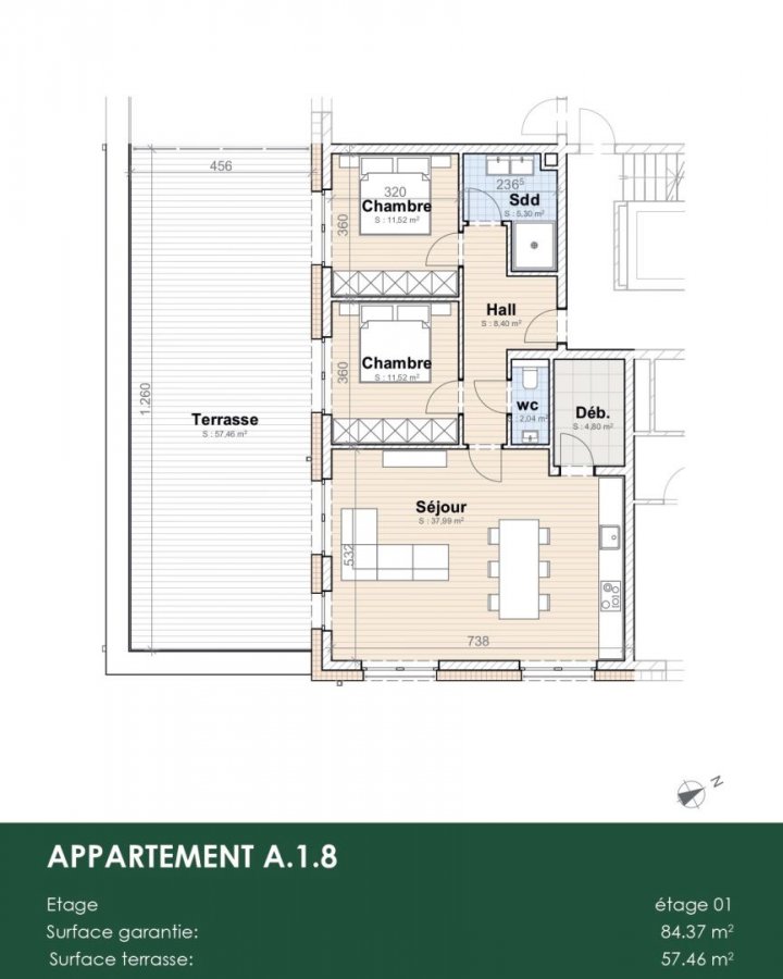 - Wohnfläche : +/-84,00 m2